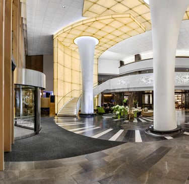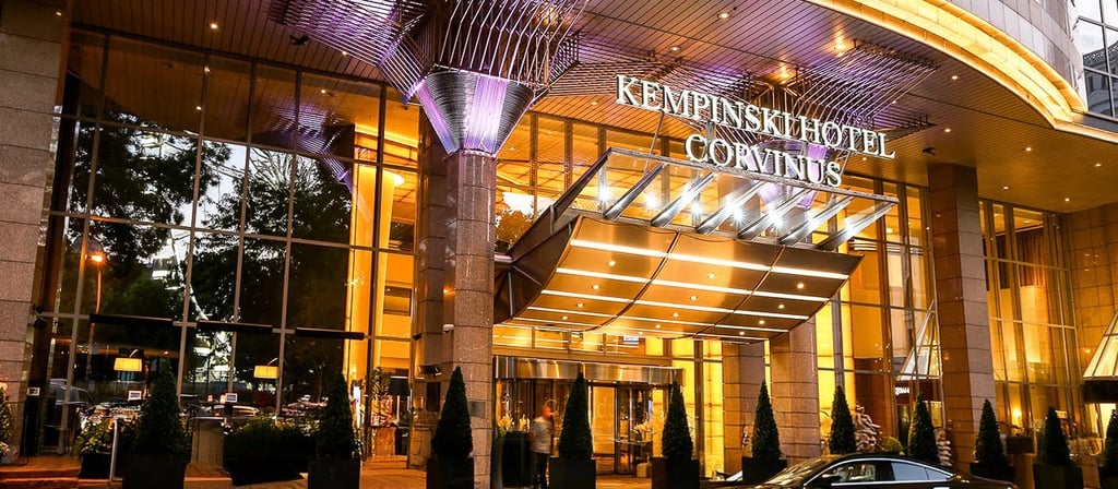 Kempinski Hotel Corvinus standing proudly in her contemporary façade is more than just a luxury hotel – she represents an intersection of modern architectural refinement, urban convenience, Hungarian creative collaboration, and comfort-forward design. Situated on the eastern side of Erzsébet tér and adjacent to de-facto central destinations like Deák Ferenc tér and the Danube bank, the hotel opened in 1992 following the democratic transformation of Hungary. Its design, a collaborative effort between local and international architects, resulted in a building that blends minimalist modernism with touches of Hungarian artistic flair. Soft stone cladding, glass façade segments, and sleek metal canopies merge into a refined appearance that contrasts with the surrounding Belle Époque structures. Inside, public spaces retain a clean, contemporary atmosphere punctuated by Hungarian art, striking sculpture installations, and changing exhibitions curated with local cultural organizations. The hotel's lobby evokes calm spaciousness, featuring modernist concrete-and-steel staircases and a curated art installation that communicates the nation's transition into global sophistication. These spaces reflect Kempinski’s philosophy: elegant efficiency, art-forward hospitality, comfort without nostalgia, and a refined welcome set in the beating heart of Budapest.
