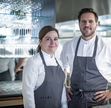Tamás Széll and Szabina Szulló share more than a kitchen—they share a vision. Both return to Hungary after distinguished international experience, and at Stand they channel that global exposure into reworking local dishes with aerodynamic precision. They emphasize sustainability and seasonal sourcing, selecting ingredients that speak of Hungary’s varied landscapes—from the clear waters of Lake Balaton and the Danube to the rolling vineyards of Tokaj and Eger.